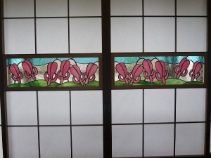 客室「こまくさ」の障子に、こまくさ のステンドグラスをはめ込みました。