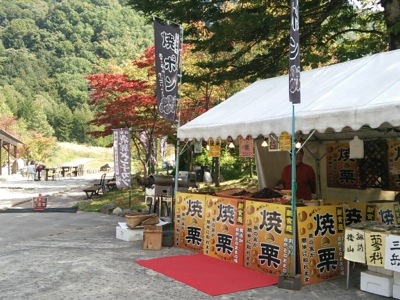 大変大きな松茸や甘栗が売ってました。観光客の方がその大きさに