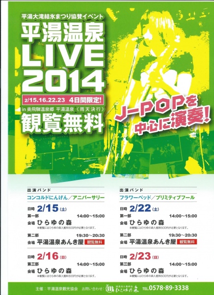 2/15・16・22・23 平湯温泉 J-POP ライブ 2014