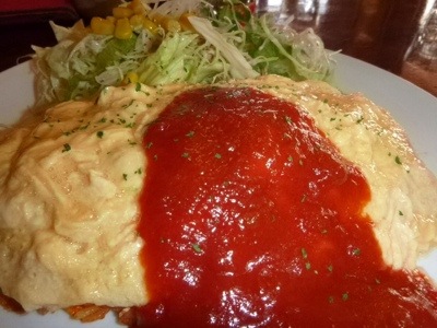 当館より徒歩3分、カフェマスタシュの「チキンオムライス」です。