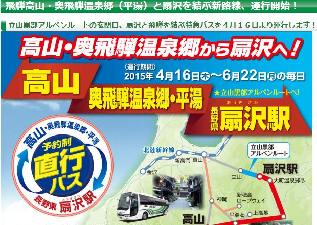 4/16~6/22 平湯から立山黒部ルート玄関口 扇沢駅へバス運行