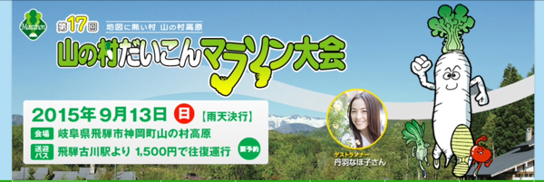 イベント情報 2015.05.09 9/13 山の村 だいこん マラソン 大会 当館より車で、80分、飛騨市神岡町 山の村 で、 「だいこんマラソン大会」が 開催されます。 詳しくはこちらまで Tweet Share イベント情報