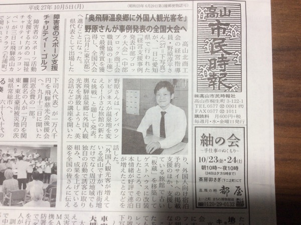- 高山北商工会 の 野原さんが、経営支援事例発表 中部ブロック大会で、最優秀賞を獲得しました。