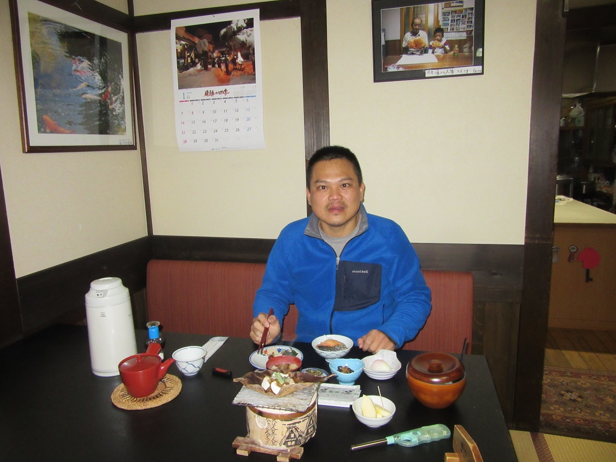 地點位在平湯溫泉,離公車站走路3分鐘,由一對老夫婦經營,他們真的不會說英文,但還是很親切友善地介紹環境及招待晚餐。