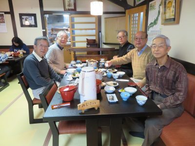 ・宿の設備も、床暖房に感激、風呂もおしゃれで絶好、給茶サービスもありがたい、等々宿を選定した幹事として仲間から感謝しきりでした。
