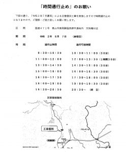 「令和2年7月豪雨」による災害復旧工事のため、下記の通り時間通行止めになります