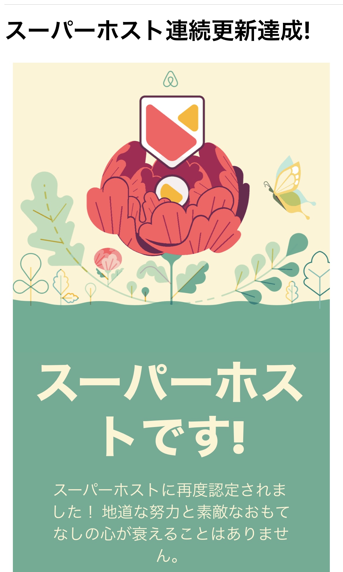 クチコミ(良のみ) 2022.04.05 スーパーホスト連続更新達成! お客様が少ないですが、スーパーホスト連続更新達成です。 情けないようですが、ありがとうございました。 Tweet Share クチコミ(良のみ), 歳時記
