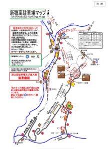 鍋平高原駐車場(P6・P12 および P7 登山者用を含む。詳細は別紙をご参照ください。)