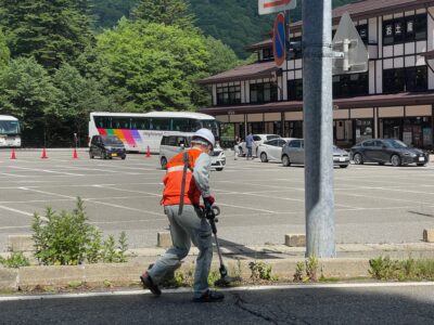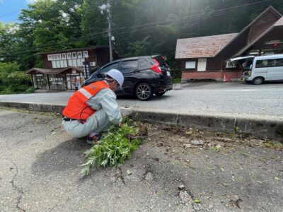 平湯バスターミナル、アルプス街道平湯、平湯温泉総合案内所、平湯臨時派出所、平湯簡易郵便局、平湯ビジターセンター 前の雑草が気になっていたので、