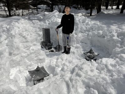 歳時記 2025.03.23 お墓 雪掘りだし お彼岸に墓参りに行かなかったので、雪から掘りだしました。 未だ1.5mは雪があります。 通りがかりの火葬場の小屋の屋根も少し降ろしました。 Tweet Share 歳時記