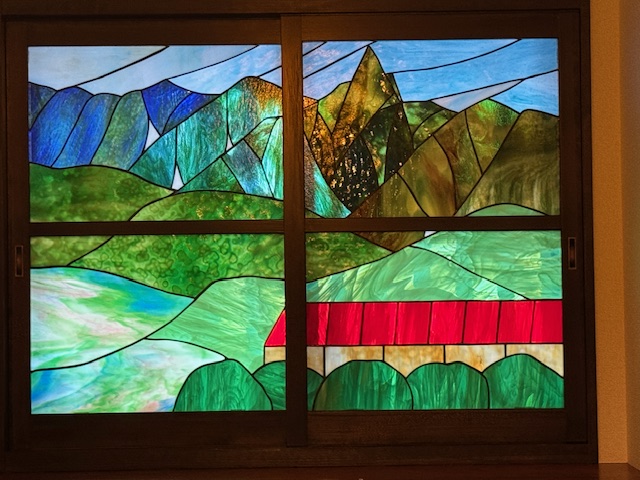 つゆくさ別館 TSUYUKUSA ANNEX 2025.09.12 別館2階 廊下奥の槍ヶ岳のステンドグラス Screenshot 赤いのは情念小屋の屋根です。 Tweet Share つゆくさ別館 TSUYUKUSA ANNEX