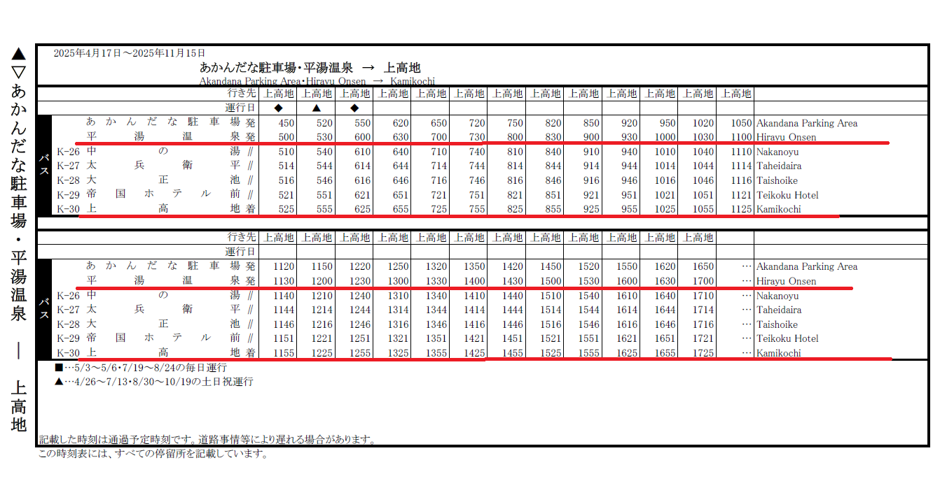FAQ 「上高地」行きのの時刻表を教えてください。〇