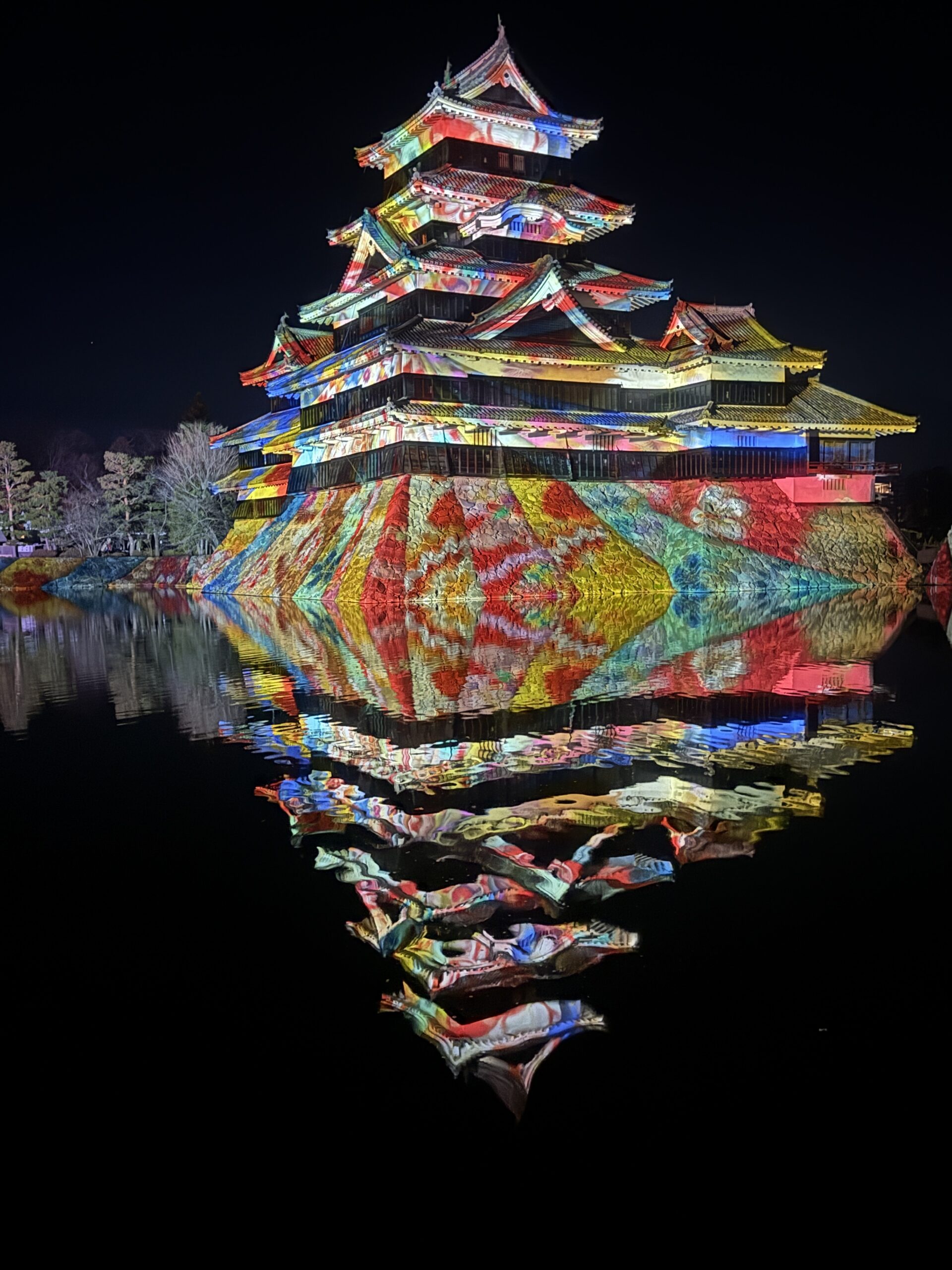 観光スポット・周辺施設 2026.01.04 松本城 プロジェクションマッピング 当館より車で70分の松本城で、プロジェクションマッピングが行われています。 2026、2、15まで、です。 綺麗ですが、昼間の松本城の方がかっこいいいですね。 Tweet Share 観光スポット・周辺施設