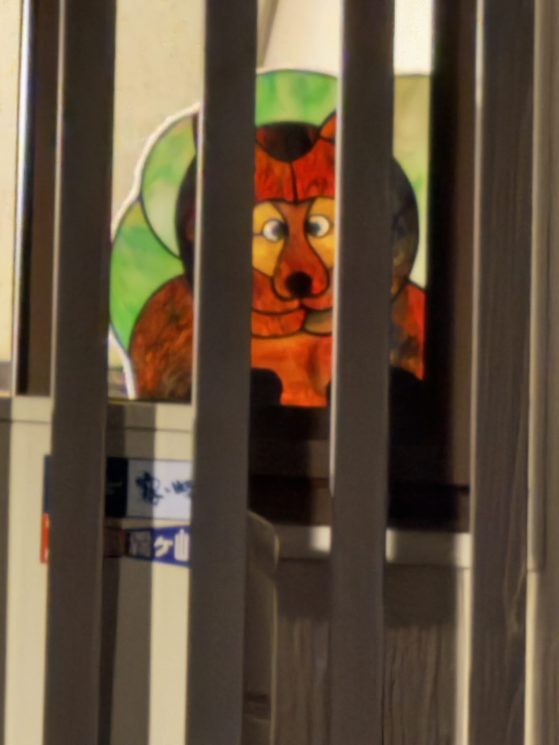 別館玄関 たぬき さる ステンドグラス