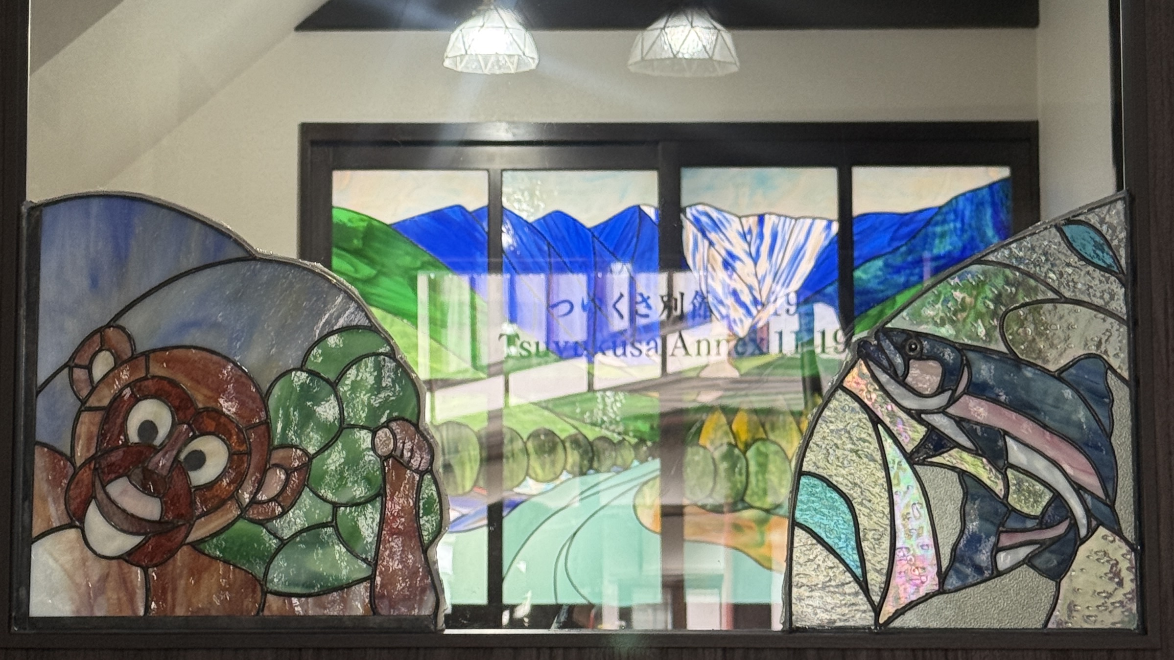 別館玄関 たぬき さる ステンドグラス